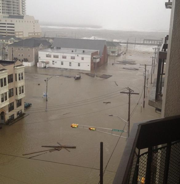 אטלנטיק סיטי, ניו ג'רזי, הוצפה וחלקים ממנה נותקו מחשמל כבר מהרוחות שהגיעו מהסערה.