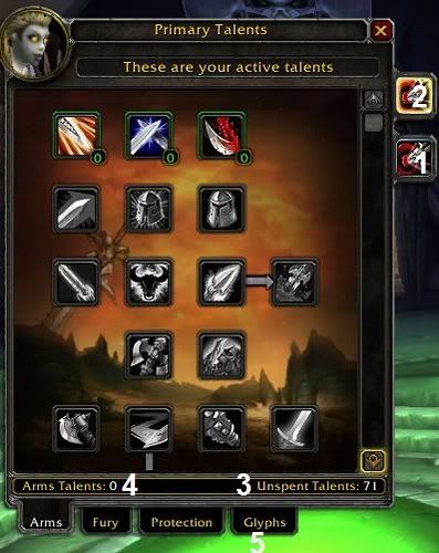 כך נראה חלון טלנטים של Warrior ברמה 80 (הכי גבוהה בגרסת Wrath of The Lich King, שהיא הלפני אחרונה).