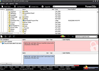 CyberLink Power2Go 6 הביאה את המאפיין הזה לקדמת הממשק המרהיב והנוח שלה. עניין של שני קליקים, והפרויקט מוכן לקלוט קבצים להצפנה.