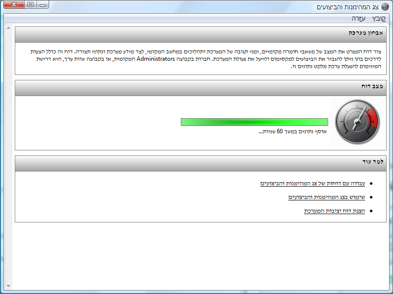 במידה ואנחנו נתקלים בביצועים איטיים של המערכת או בבעיות אחרות השלב הראשון יהיה למצוא איפה נמצאת הבעיה, ב VISTA, אנחנו יכולים לייצר דו"ח מפורט המתאר את מצב המערכת בעזרת כלי חדש