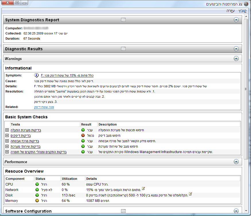 לאחר מכן, נקבל דו"ח המערכת המלא, התמונה הזאת היא רק חלק ממנו (נראה שהמחשב שלי זקוק לקצת עזרה)