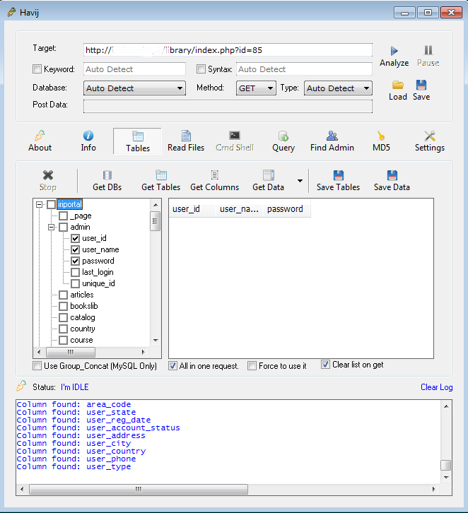 The power of Havij that makes it different from similar tools is its injection methods. The success rate is more than 95% at injectiong vulnerable targets using Havij.