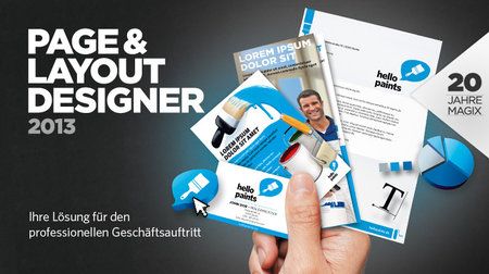 MAGIX Page & Layout Designer 2013 is the ideal program for creating company logo designs, advertising campaigns and marketing materials. Present your business professionally. Business cards, flyers, newsletters or brochures: It doesn't matter what kind of document you want to create, this single program is everything you need to make your business successful!
