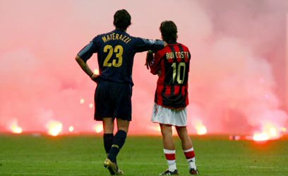 מטראצי וקושטה בדרבי המילנאזי שמרו אחד לשני מקומות במופע הזיקוקים בשנה שעברה... שניהם מתענגים על ההצגה.