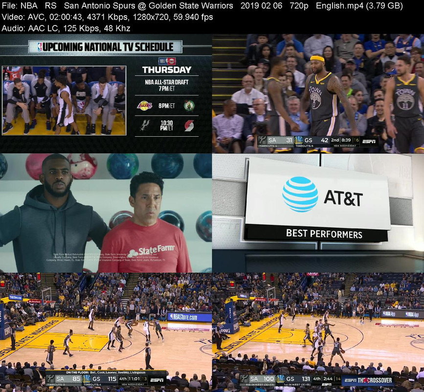 NBA RS San Antonio Spurs @ Golden State Warriors 2019 02 06 720p English