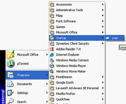 כעת יש ליצור קיצור דרך לחייגן ולהעתיק אותו לתיקייה המכונה Startup. אפשר להגיע לתיקייה דרך תפריט ההתחלה, בתוך Programs (תוכניות). מי שמסתבך עם הגרירה יכול לגשת לבד לתיקייה: נכנסים ל-C:/Documents and Settings (מעתיקים את הטקסט לשורת הכתובת ב-Internet Explorer), בוחרים בספרייה הנושאת את שם המשתמש שלכם, ואז נכנסים לספריות הבאות, לפי הסדר: Start Menu>Programs>Startup.