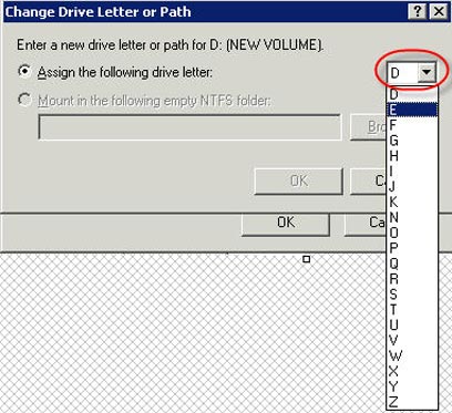 בחלון הזה נלחץ על הכפתור "שנה" (Change), אשר ייפתח חלון נוסף (ראו תמונה בהמשך), בו תוכלו לבחור את האות הרצויה מתוך הרשימה, ואז ללחוץ על כפתור "אישור" (OK). בעקבות השינוי תקבלו הודעת אזהרה, אשר יתריע על כך שתוכנות מסוימות עלולות לא לעבוד לאחר השינוי. אם אתם בטוחים שאתם מעונינים לשנות – אשרו שוב.