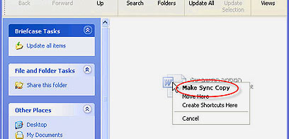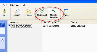 חברו את המחשבים ברשת, או הכניסו את ה-Disk On Key עם המזוודה אל המחשב המיועד. הכנסו למזוודה, וכעת לחצו על אחד משני הכפתורים הייעודיים לסנכרון, המופיעים בסרגל הכלים העליון: "עדכן קבצים שנבחרו" (Update Selection) או "עדכן הכל" (Update All).