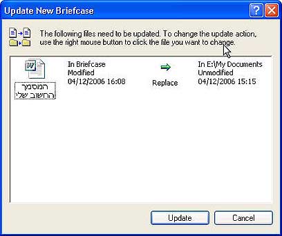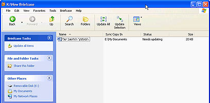 במחשב השני, או על אפילו על ה-Disk On Key בכל מחשב שתתחברו אליו, פתחו את המזוודה ועבדו על הקבצים כרגיל. שימו לב רק שלא להוציא את הקבצים אל מחוץ למזוודה. קובץ שיצא מחוץ למזוודה, יאבד את היכולת שלו להתעדכן, ויהפוך להיות קובץ רגיל שלא יהיה ניתן לסנכרנו.