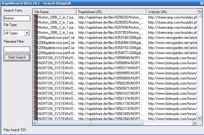 בתוכנה אתם מפשים קבצים,והיא מביא קישורים תקינים מראפידשייר.