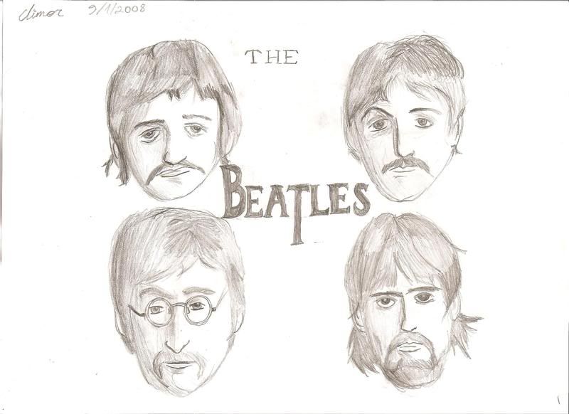 ציירתי לפני איזה שבוע ציור של הביטלס, אבל לא ממש רציתי לשים אותו, כי יצאו לי ביטלס טובים יותר, כמו ג'ורג' האריסון בציור "לזכר..." אבל בכל זאת אני רוצה קצת חוות דעת... וכן, אני יודע שהפכתי את הסדר של הביטלס...