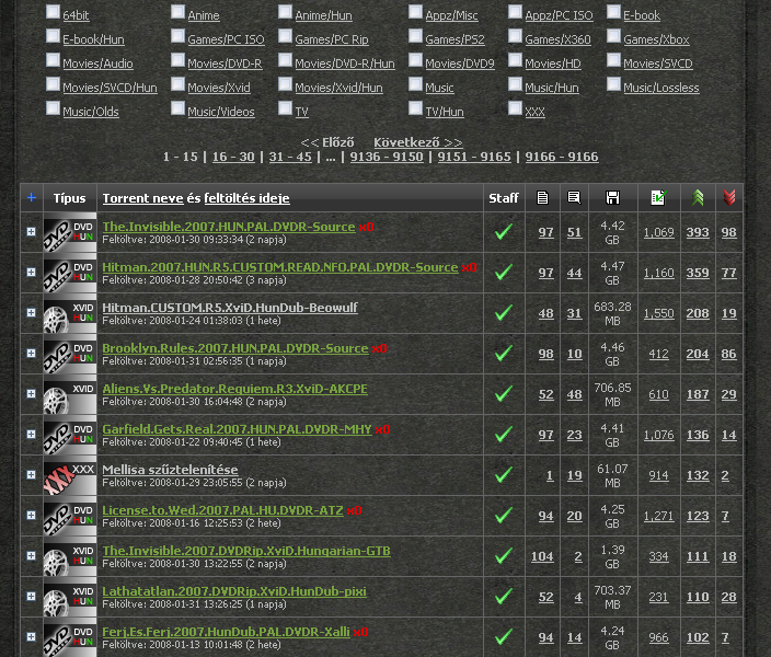 קטגוריות וטורנטים(מסודרים לפי סידרים):
