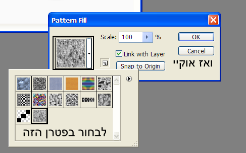 בשכבת הפטרן שנוצר נחליף את מצב השכבה לסופט לייט, ואת השקיפות ל70 אחוז.
