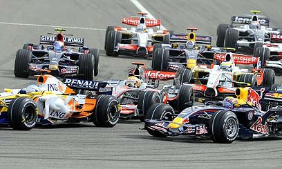 בלגאן בזינוק. שימו לב להמילטון מאחורי אלונסו משמאל. זה לא נגמר טוב.מילטון ניסה בכוח, ונתקל - תרתי משמע - בספרדי. המקלארן טיפסה על הרנו מאחור, ושלחה את השניים לטיפול מהיר. המילטון לא התאושש, וסיים מירוץ בו יכול היה לצבור לפחות שתיים-שלוש נקודות, עם 0 עגול. לא נורא, הוא ילמד.