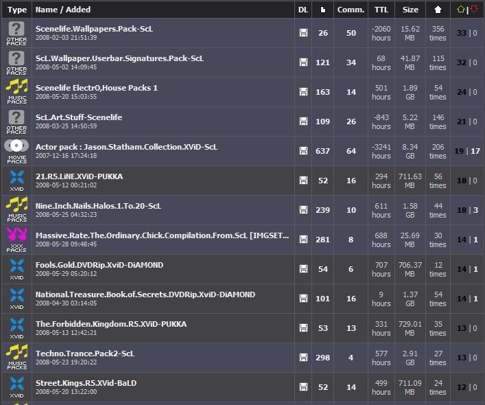 באתר יש כ2516 טורנטים פעילים נכון לתאריך בו נכתב האשכול,כל הטורנטים בקטגורית הפאקים, Pack הינם פרי ליצ', לנצח