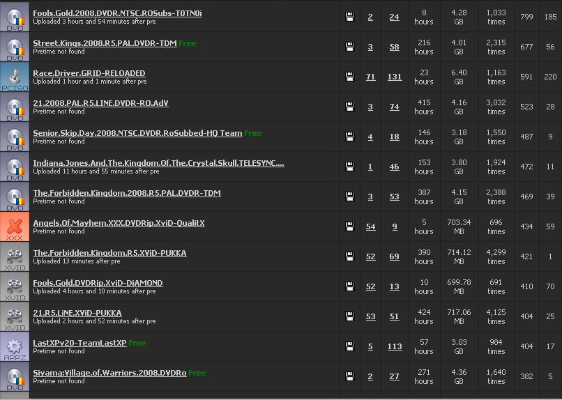 באתר יש 10312 טורנטים שרבים מהם הם סרטים בפורמט DVD-R.