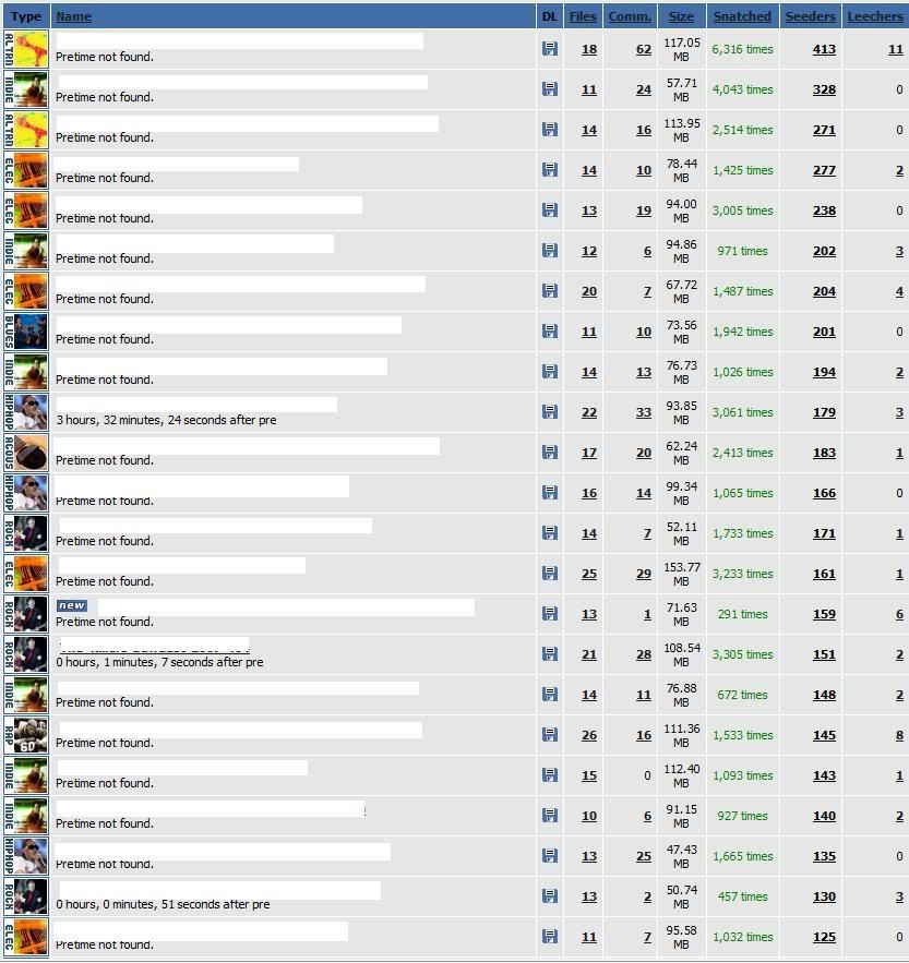 מספר טורנטים המסודרים לפי כמות הסידרים הרבה ביותר: