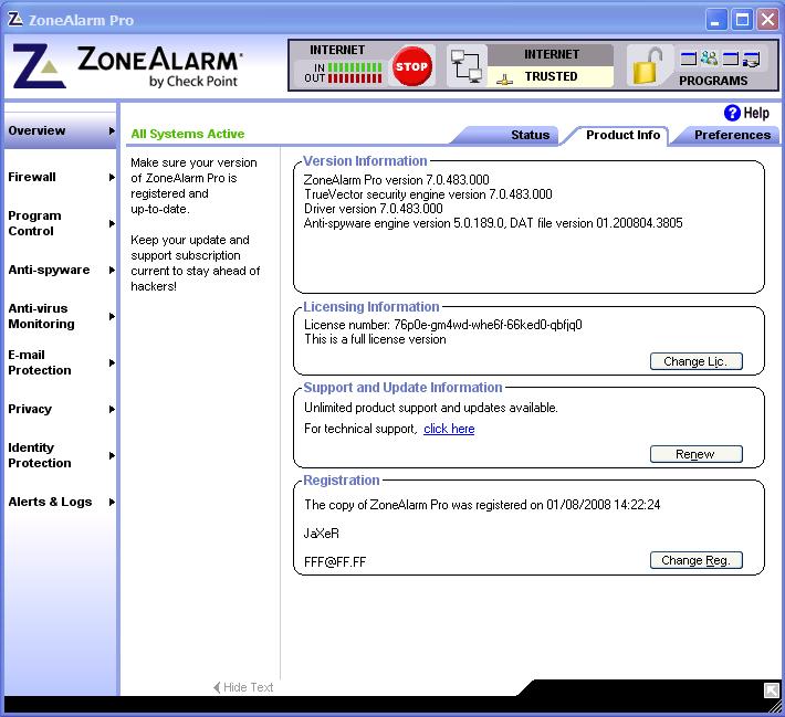 ZoneAlarm Pro 2008 v7.0.483