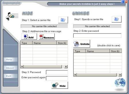 Steganography is your boss spying your outside and inside emails? Is your wife or husband surveying your letters from other friends? Are you afraid that your competitors in company or in business penetrate your system and find your valuable information? Data transmissions are vital and became a necessity nowadays. Whether you share your private messages with your close friends, or business / commercial secrets with your partners , you must protect your confidential information from hackers, your boss, or your competitors.