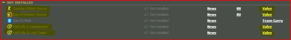 במשחקים שמסומנים בצהוב[משחקים של VALVE יש באן מוואק]