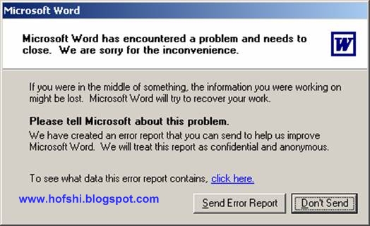 כולנו מכירים את זה. יישום כלשהוא קורס (וורד?) ומייד אח"כ מבקש מאיתנו לשלוח דו"ח שגיאה למיקרוסופט: