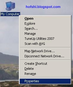הקליקו הקלקה ימנית על My Computer וביחרו Properties :