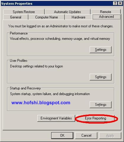 בחלון שנפתח עיברו לטאב שנקרא Advanced ושם ליחצו על Error Reporting