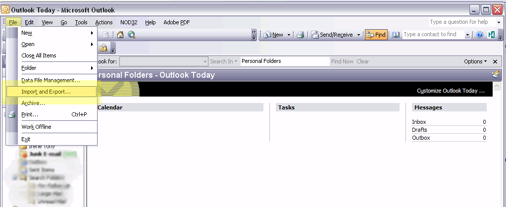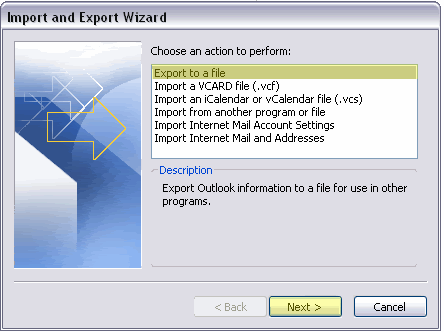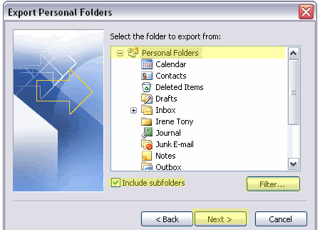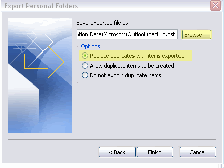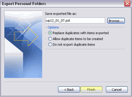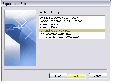 ייצוא קובץ outlook (קובץ outlook מחזיק את הסיומת PST )