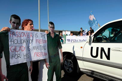 שעות ספורות לפני שהוא נפגש עם נועם ואביבה שליט, נכנס הבוקר (יום א') מזכ"ל האו"ם לרצועת עזה. במעבר הגבול במחסום ארז הפגינו כמה עשרות פעילים למען שחרורו של גלעד שליט, בדרישה להיפגש עם החייל החטוף ולהביא לשחרורו בהקדם האפשרי.
