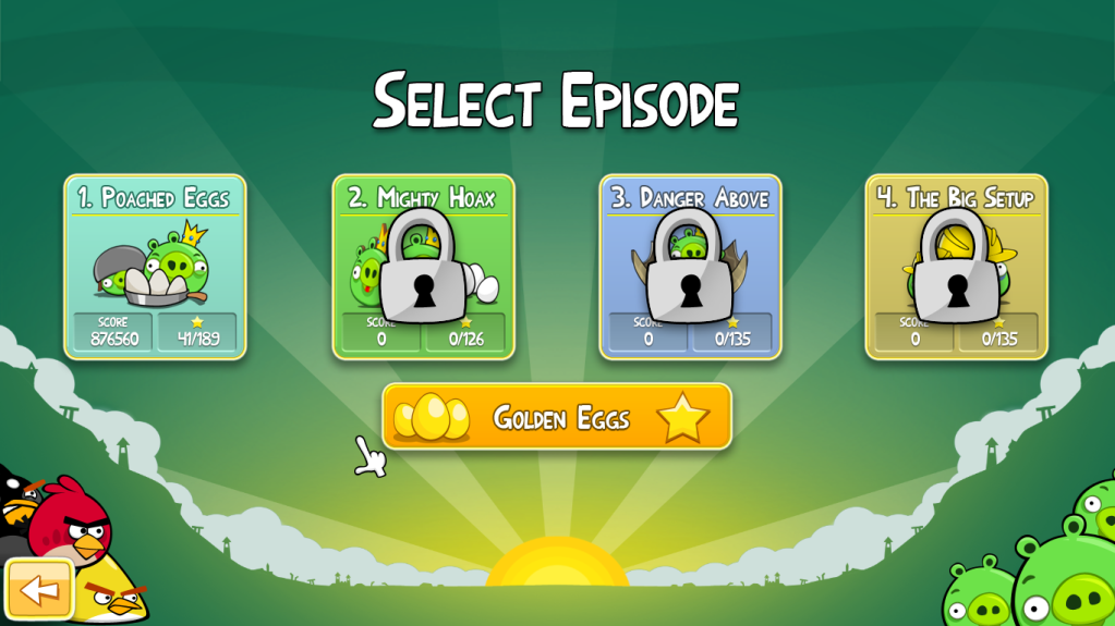 משחק חשיבה אשר יצא לראשונה בדצמבר 2009 והיה להצלחה היסטרית בפלטפורמת האייפון. כאשר משפחה של ציפורים קמה בבוקר, היא מגלה לתדהמתה כי ביציה נעלמו. מכיוון שהיחידים שנמצאים באיזור הם משפחה אחרת של חזירים, הציפורים מחליטות להכריז עליהם מלחמה ובכך מתחיל המשחק. בכל שלב במשחק, ויש הרבה כאלה, תצטרכו להשליך ציפורים משלל סוגים ויכולות על החזירים שמנסים להסתתר תחת קורות עץ, זכוכית ומתכת ולזרוע כמה שיותר הרס בדרך. המשחק יצא לאחרונה לפלטפורמות סלולריות אחרות, כגון אנדרויד, פאלם ולנוקיה.