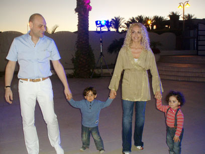 אישתאר עם הבעל מישל והתאומים. "הייעוד שלי - להיות אמא"