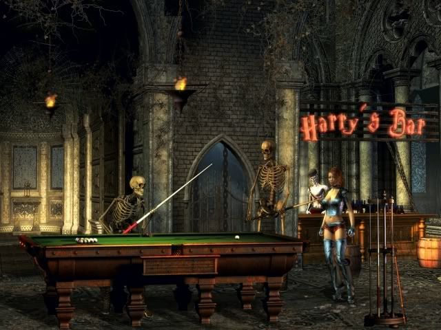 In The Rockin’ Dead, the player takes on the role of Alyssa, member of the pretty to look at but unsuccessful metal band “Deadly Lullabyes”. Following an anonymous invitation to a concert, they have an accident on the bumpy terrain just before they reach their destination. When Alyssa comes round, all the equipment of the band is missing – as well as the rest of the band. The following events span a spaced adventure in utter “B Movie” style: Rocking skeletons, wobbly Elvises and numerous undead put Alyssa through various challenges. An extremely bizarre setting which somehow reminds Alyssa of one of her songs…