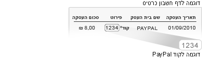 1. בדוק את דף חשבון כרטיס האשראי שלך בעוד יום או יומיים וחפש את הקוד ששלחנו עם החיוב - יתכן עיכוב קל. אם אינך יכול לבדוק את דף חשבון כרטיס האשראי שלך באופן מקוון, בדוק את דף החשבון המודפס שיגיע בדואר (עשוי לארוך עד 30 יום). תמצא שם את החיוב מ-PayPal, יחד עם קוד בן ארבע ספרות.