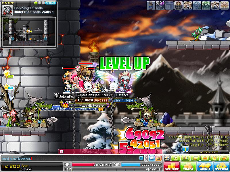 ולגבי ההודעה הכחולה הזאת זה אומר שעליתי לרמה 200 וקבילתי את המדליה Aran The Hero a שרת פרטי עלק.