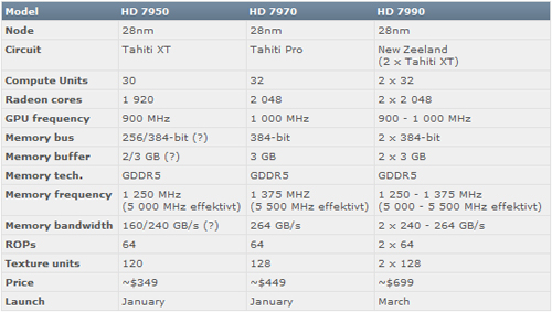 כרטיס ה-Radeon HD 7990 כפול הליבה אמור להגיע בחודש מרץ ולהציע מאפיינים כפולים מאלו של ה-Radeon HD 7970, תוך שמירה על תדרי עבודה דומים. אין לנו עדיין שום אינדקציה לביצועיה של הארכיטקטורה החדשה, אבל הכרטיס הזה עדיין נשמע מפלצתי לגמרי.