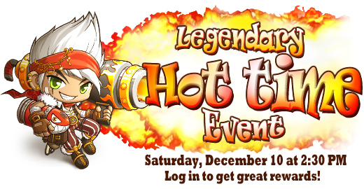Get ready for a Legendary Hot Time event! This Saturday, December 10, all Maplers that are logged in from 2:30 PM - 2:31 PM Pacific will receive a gift box that will contain the following items guaranteed!*