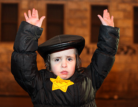 ילד יהודי נושא טלאי צהוב ומרים זרועותיו בכניעה - זה המראה הקשה שניסו מאות מפגינים חרדים לצרוב בתודעת הציבור החילוני. המפגינים מחו על "היקום הציוני, שמשתולל בהתקפה חסרת תקדים על החרדים" בעקבות סוגיית הדרת הנשים. מפגין: "החילונים מתנהגים אלינו כמו נאצים"