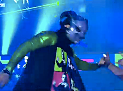 וג'ף נכנס בתלבושת חדשה ומחלק כיפים לקהל היושבים בשורה הראשונה
