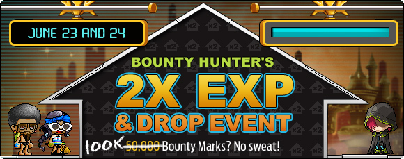 All week, the citizens of Maple World have been working tirelessly to hunt down the wanted criminals and bring them to justice. We previously announced that each new milestone would earn another 2x EXP & Drop Event. Well, Maplers have completely blown past our expectations, and have already made over 100k bounty kills! Those criminals don't know what hit 'em.Which means that for this weekend and next, we're holding a 2x EXP and Drop Event. Congratulations!