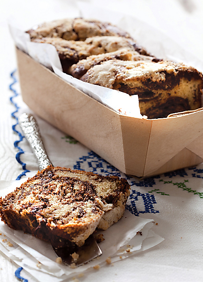 - מרכיבים את העוגה ואופים: מקמחים משטח עבודה. חוצים את הבצק. מרדדים חצי מהבצק למלבן בגודל 25×40 ס”מ. מורחים שכבה נדיבה ואחידה של מלית ומגלגלים לגליל ארוך. מקפלים את הגליל לשני חלקים שווים, כך שתיווצר צורה של פרסה, ומלפפים לצמה. מניחים בתבנית. חוזרים על הפעולה עם מחצית הבצק הנותרת.