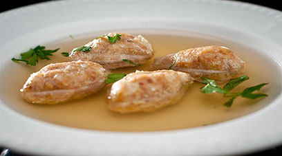 - מגישים לכל סועד מעט מרק עוף ושלושה עד ארבע כדורים.