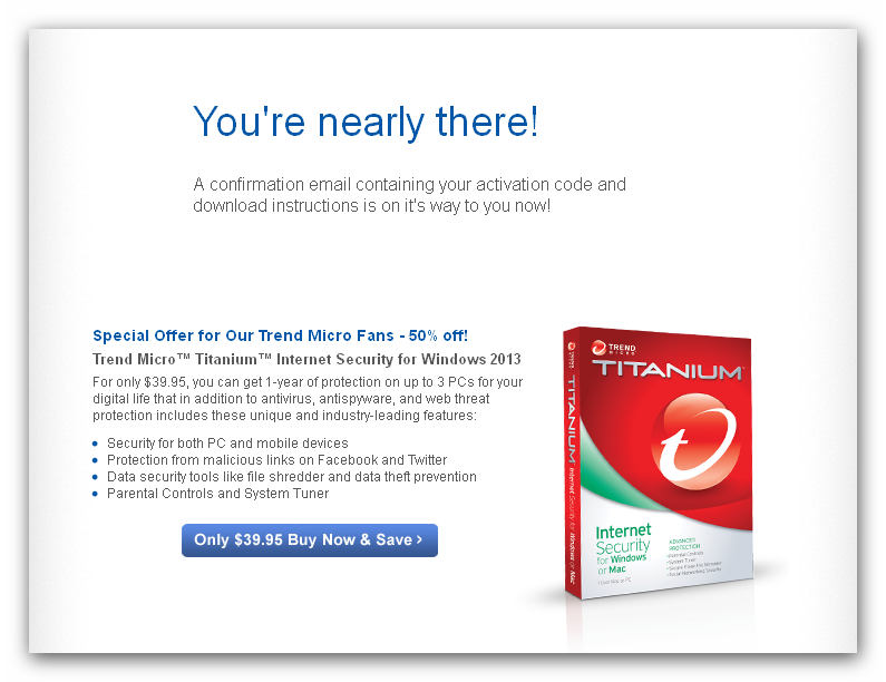 TrendMicro 2013 קישור רשמי עבור 180 ימיםקישור רשמי TrendMicro 2013 עבור 180 ימים, רק להירשם עם אימייל חוקי ותקבל קישור להורדה & מפתח בדוא"ל. http://go2.trendmicro.com/fearless_web_form/
