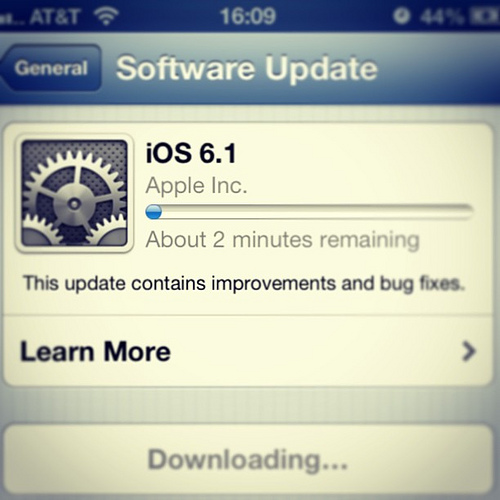 עדכון מערכת ההפעלה iOS לגרסה 6.1 מתוך האייפון (כל הזכויות שמורות CC BY-NC 2.0 by ericritter)