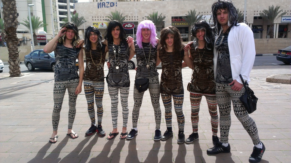 אז זה פורים אחרון שלנו במקיף, שכבה י"ב מאשדוד התחפשנו עם כמה חברים לפרחות עם טייץ איליים