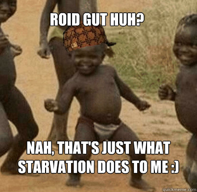 אני כל החיים רזה מאוד לא משנה כמה אני אוכל, בשנים האחרונים התחלתי להתאמן ואני גם די שרירי, אין לי בכלל שומן בגוף, והבטן הנפוחה שיש לי היא לא כרס של שומן, אם אני מכווץ אותה רואים את הקוביות יפה מאוד.
